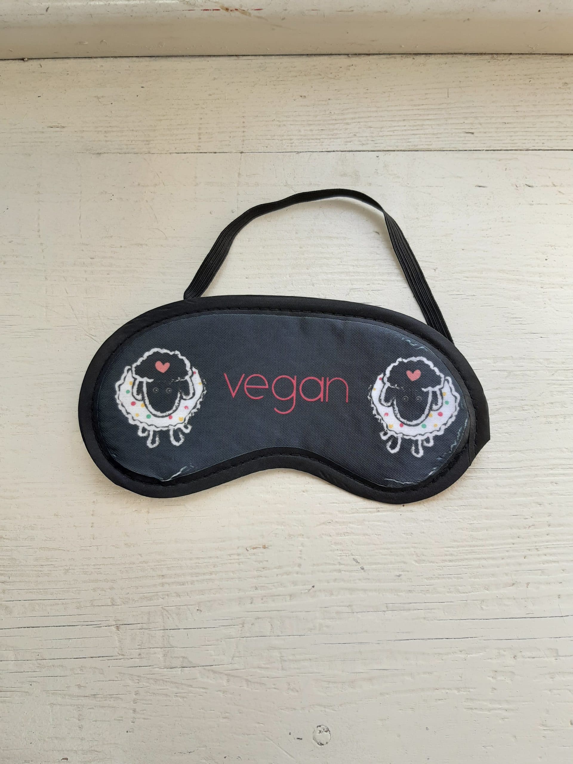 כיסוי לעיניים בצבע שחור עם הדפסה בטכניקת סובלימציה.