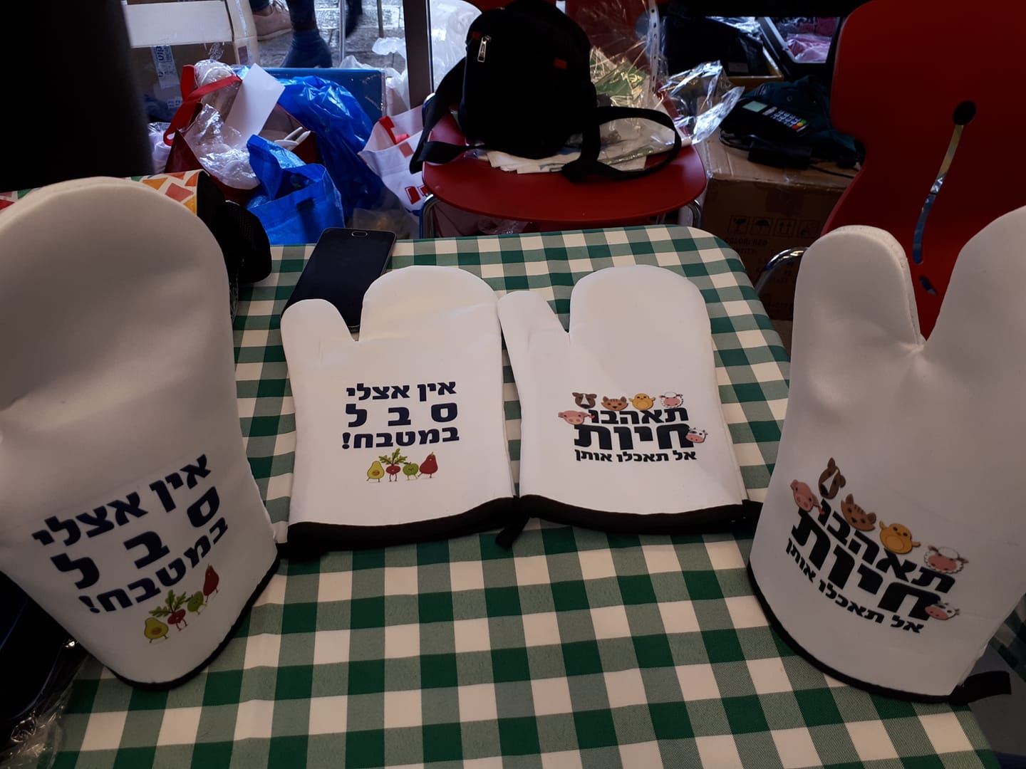 כפפה למטבח עם מסר טבעוני.