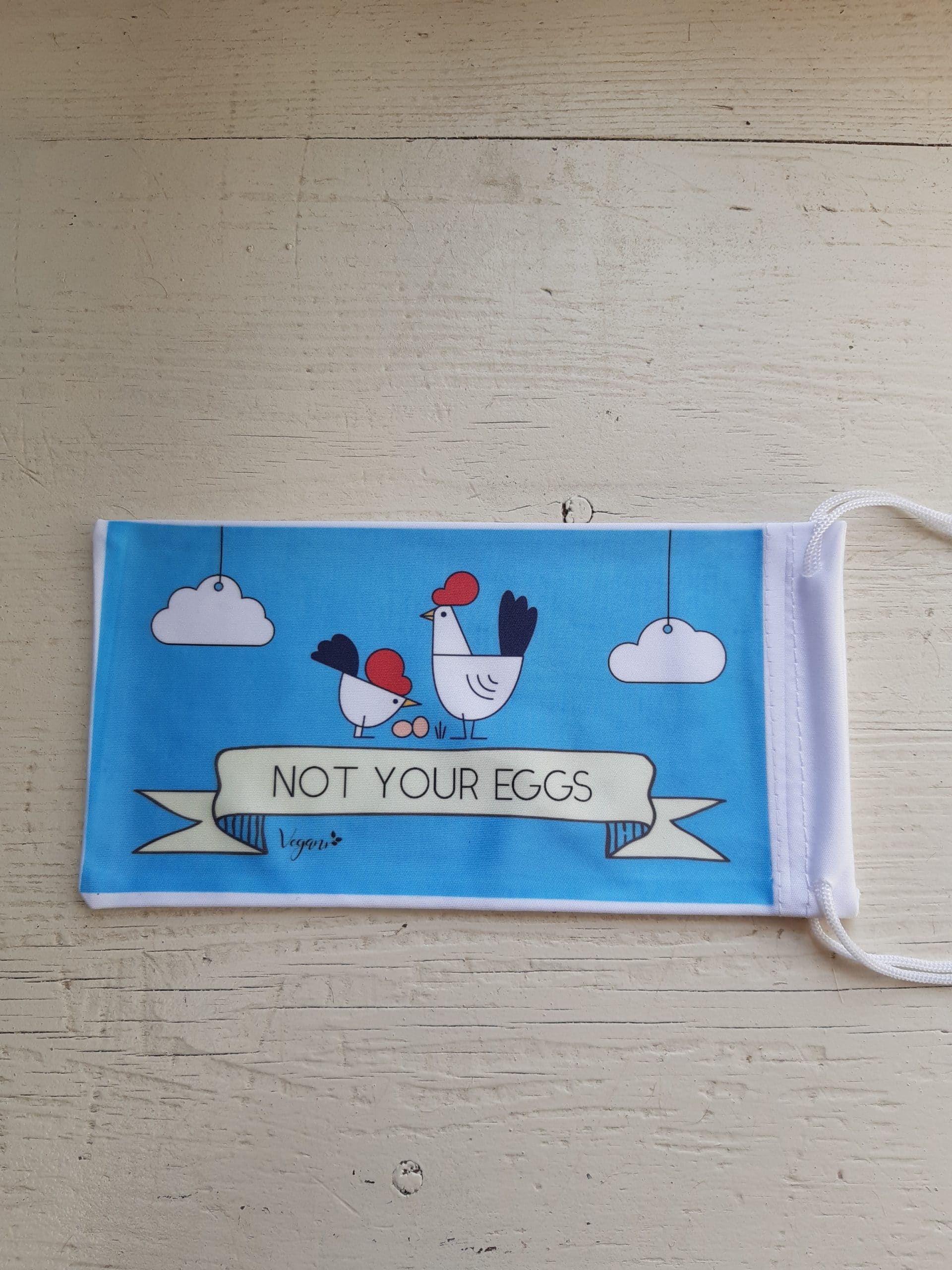 נרתיק למשקפיים מבד מיקרופייבר עם מסר טבעוני.